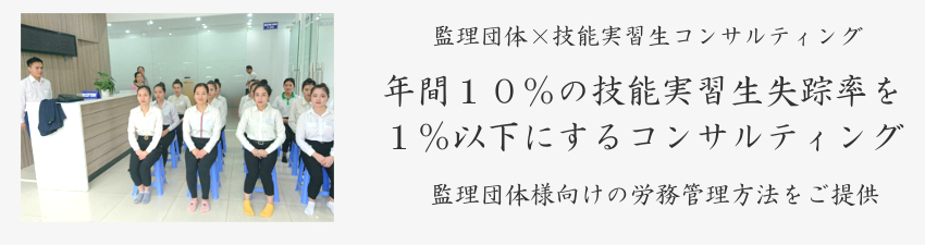 年間10%の失踪率を1%以下にする実績を元に、監理団体様の労務管理をコンサルティングします。